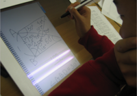 | 実物投影機操作インタフェース 実物投影機の操作の難しさを解消するために,電子黒板上でのタッチ入力によって直接的に実物投影機の操作を可能とするインタフェースの研究を行っています. | 授業観察記録・閲覧システム 授業参観者の気付きを授業の振り返りにより的確に活かすために,授業参観者が参観中に書いた手書き筆記によるコメントを,授業を撮影した映像,参観者が撮影した写真と同期して表示する機能を提供する授業評価記録・閲覧システムを研究しています | 電子黒板&学習者用端末 電子黒板,学習者用端末,指導者用端末からなる教科指導におけるICT活用のためのシステムの研究を行っています. |